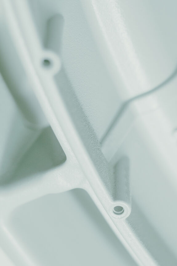 Durch die Auswahl des optimal geeigneten Verfahrens, werden die einander eigentlich widersprechenden Funktionen, optisch gute Oberfläche und starke Verrippung, miteinander in Einklang gebracht. Durch den Einsatz eines optimierten Kunststoff-Compounds wird die geforderte Lastaufnahme erreicht.