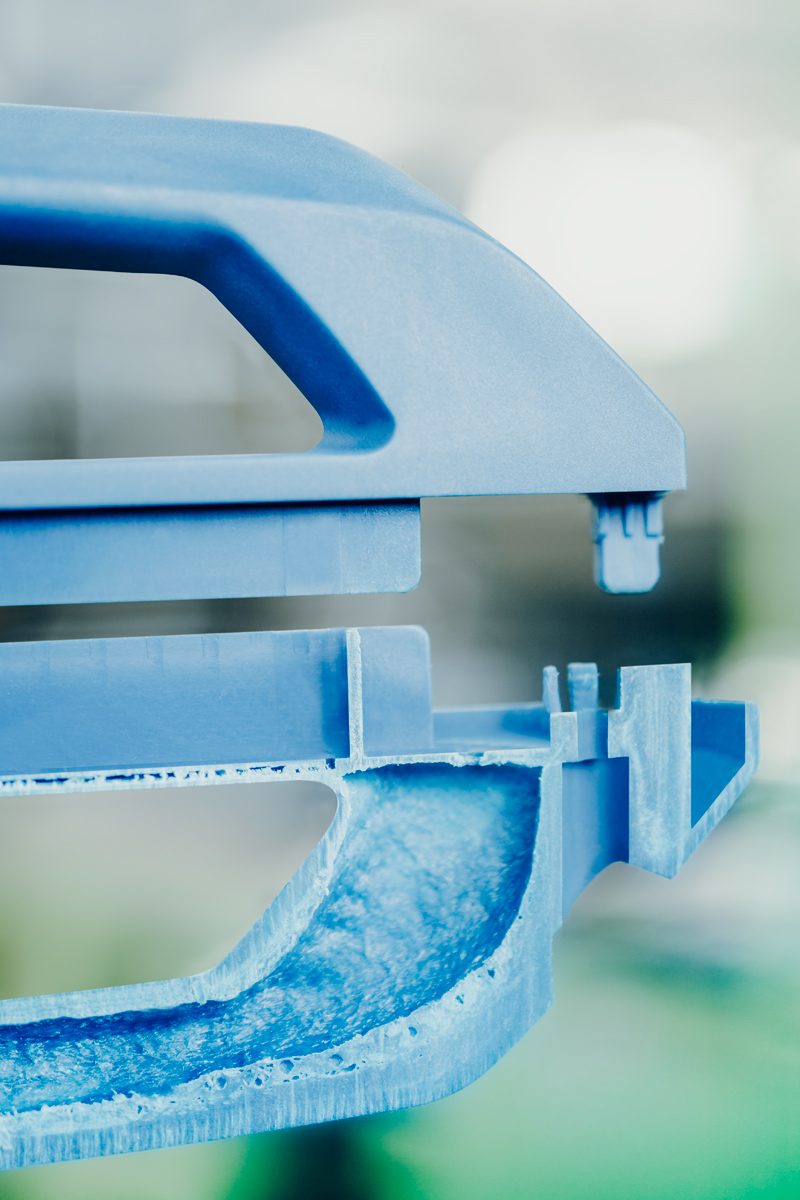 Das TSG-Verfahren zeichnet sich durch eine kompakte, porenarme Außenhaut sowie eine geschäumte Kernschicht aus.